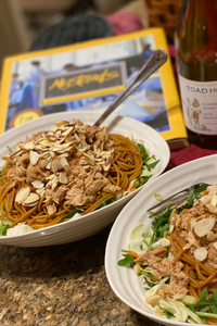 Chinese Chicken Salad with Sesame Noodles & Rice Vinegar Cucumbers. Following the 2019 National Association of REALTORS® Convention, a group of industry friends did a wine country tour. We stopped at Mustards Grill for lunch on the way to the AirBnb in Napa. It was pure luck they had a table, and it was the perfect way to begin a vacation centered on food and wine. That day, I ordered this salad and could not stop eating it. So many layers and flavors. So, yes, I bought the cookbook.